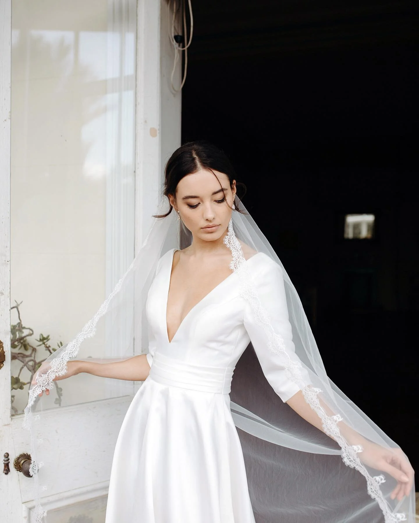 Go full-romantic in a cathedral style veil - usually sitting at around 3m in length, the cathedral veil makes for some gorgeous shots and an elegantly trailing ensemble.