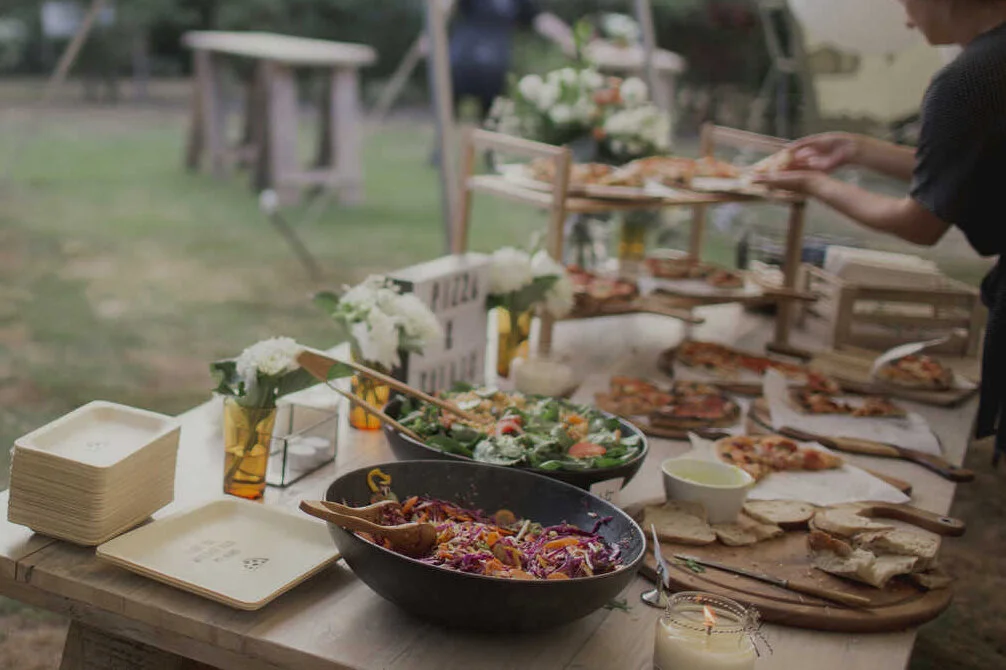 Another area to talk to your caterers about is waste disposal. Do they compost leftover food scraps? Recycle where they can? Also chat to them about donating leftover food to charities or even sending guests home with doggy bags!