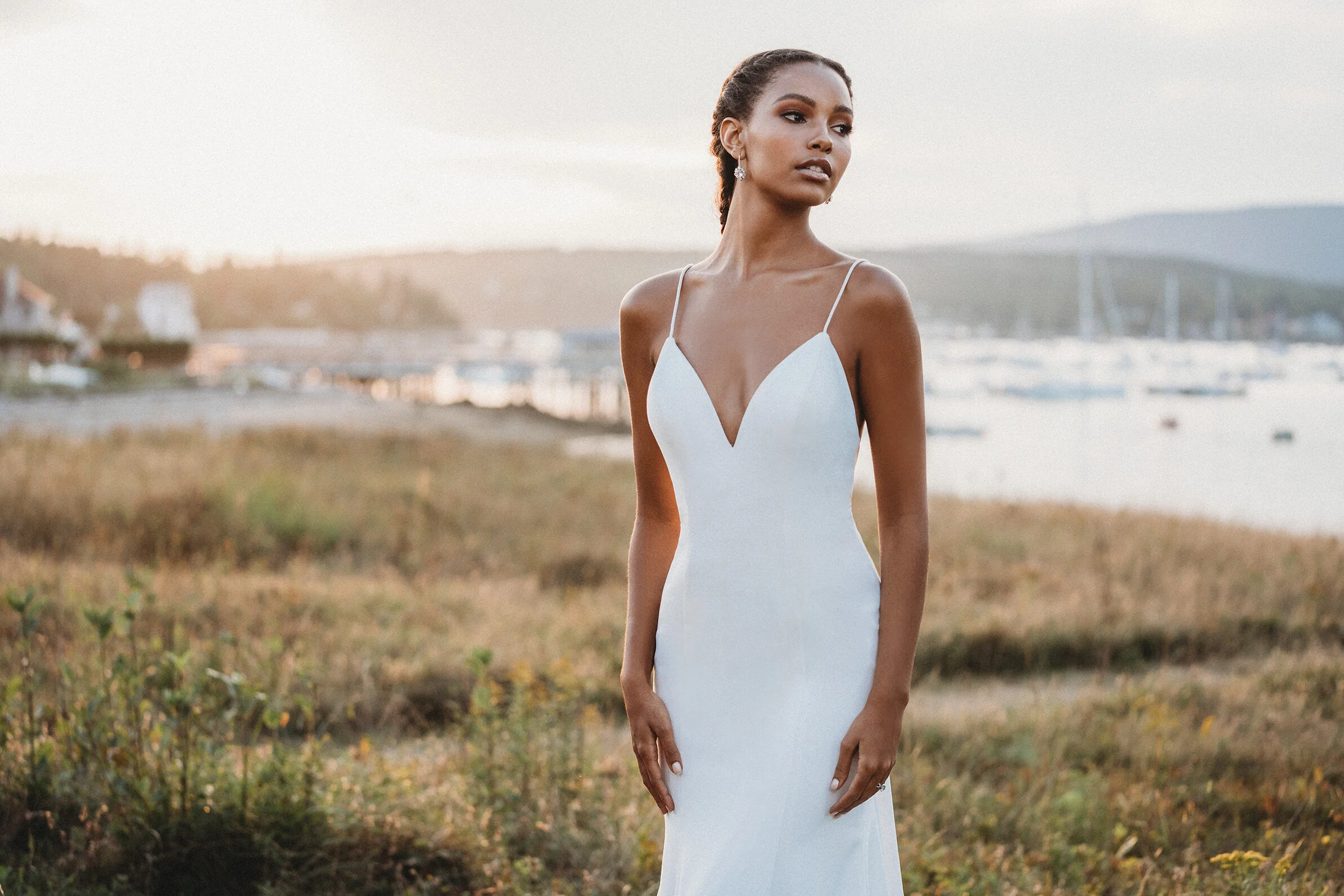Want to go full minimalist with the dress? Ditch the veil, pare back the jewellery to some dainty, elegant pieces, and choose a dress that’s a little less lace and sparkle.